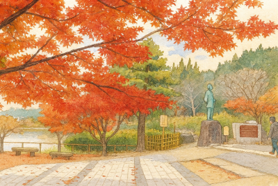 銅像周辺広い空と紅葉の対比が美しい★★★★☆★★★★★