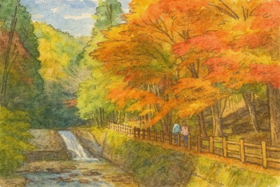 紅葉の時期は気温差が大きいため、軽く羽織れる上着を持っておくと安心です。靴は歩きやすく滑りにくいものを選ぶと、道の変化にも対応しやすくなります。飲み物や小さなおやつを持っておくと休憩時に役立ち、無理なく歩けます。雨上がりや朝早い時間は地面がしっとりして滑りやすいことがあるので、足元に注意しながら進みましょう。自然の中を歩くため、無理をしないことが安全につながります。